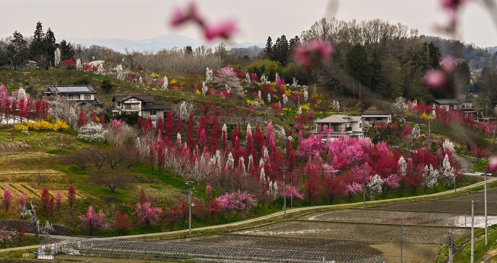 【 春 】 ■ 福島県福島市: 桜堤公園(さくらづつみこうえん) ■ 山形県 銀山温泉:心暖まる宿の灯